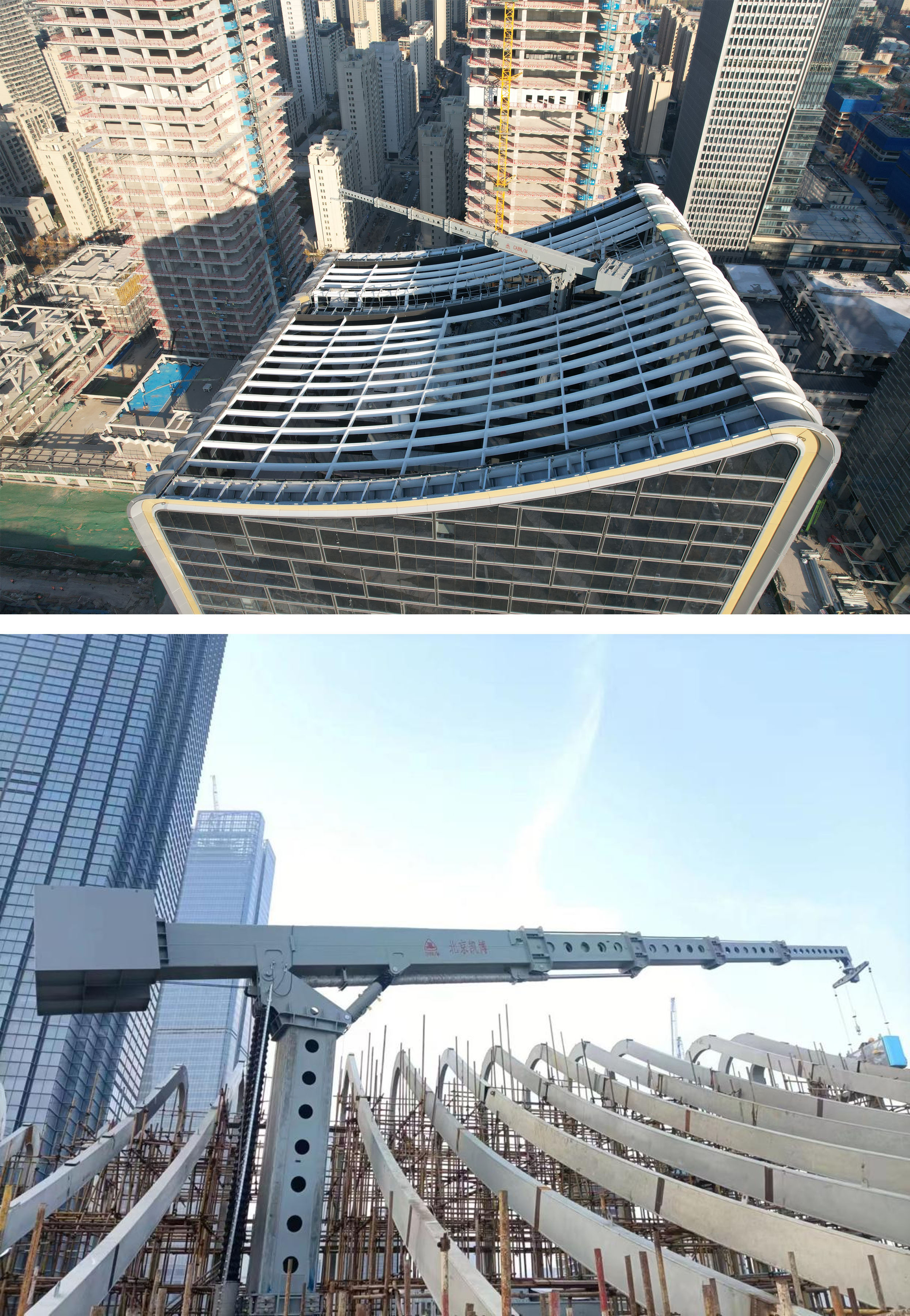 泰安金融商務(wù)區(qū)雙子塔建筑形態(tài)呈“雙手合十”狀,寓“禮拜泰山”之意,其獨(dú)特的玻璃幕墻設(shè)計對日常維護(hù)提出極高要求。凱博擦窗針對項目建筑特點(diǎn)進(jìn)行創(chuàng)新設(shè)計:超長臂展設(shè)計可覆蓋雙子塔復(fù)雜的立面結(jié)構(gòu)、液壓升降立柱結(jié)構(gòu)可實(shí)現(xiàn)完美停機(jī)隱藏、智能化控制系統(tǒng)可實(shí)現(xiàn)遠(yuǎn)程故障診斷與維護(hù)、多重安全防護(hù)裝置最大限度保障高空作業(yè)安全,既完成“空中衛(wèi)士”守護(hù)職責(zé),又保護(hù)了建筑美觀度。