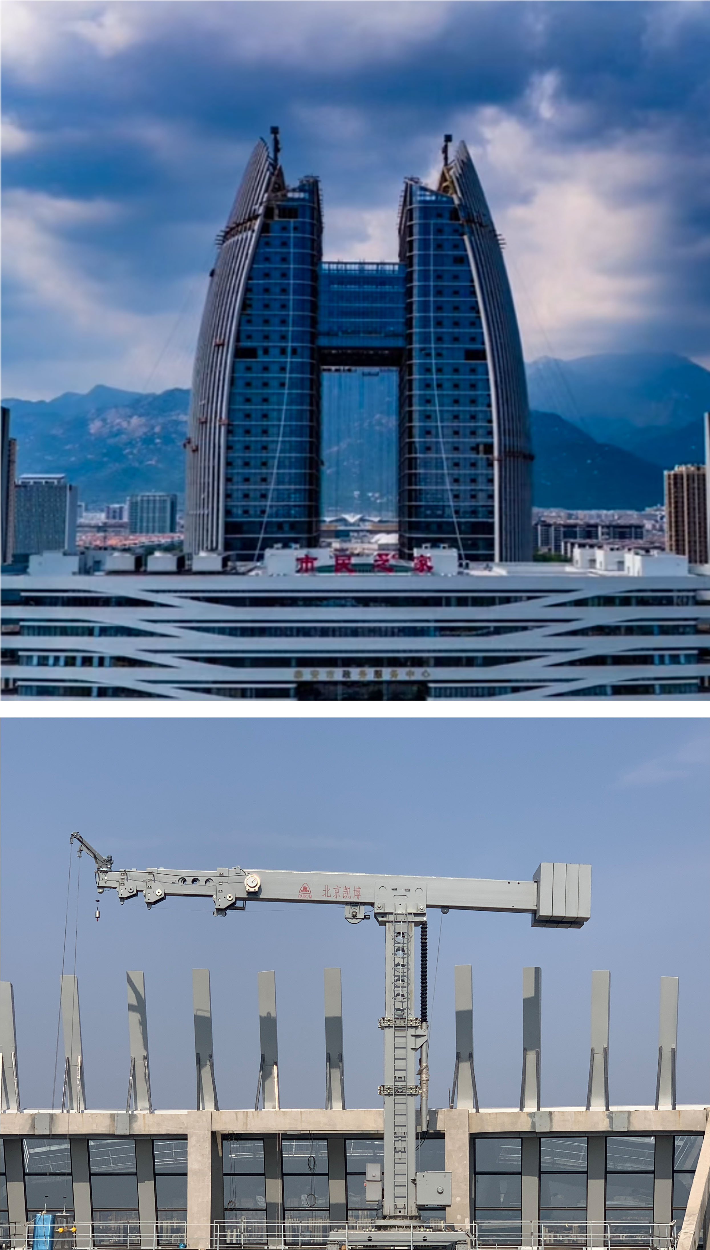 近日,北京凱博擦窗機(jī)械科技有限公司(以下簡稱“凱博擦窗”)自主研發(fā)生產(chǎn)的大型擦窗機(jī)亮相泰安金融商務(wù)中心雙子塔,為這座地標(biāo)性超高層建筑提供高效、安全的外立面清潔維護(hù)服務(wù)。